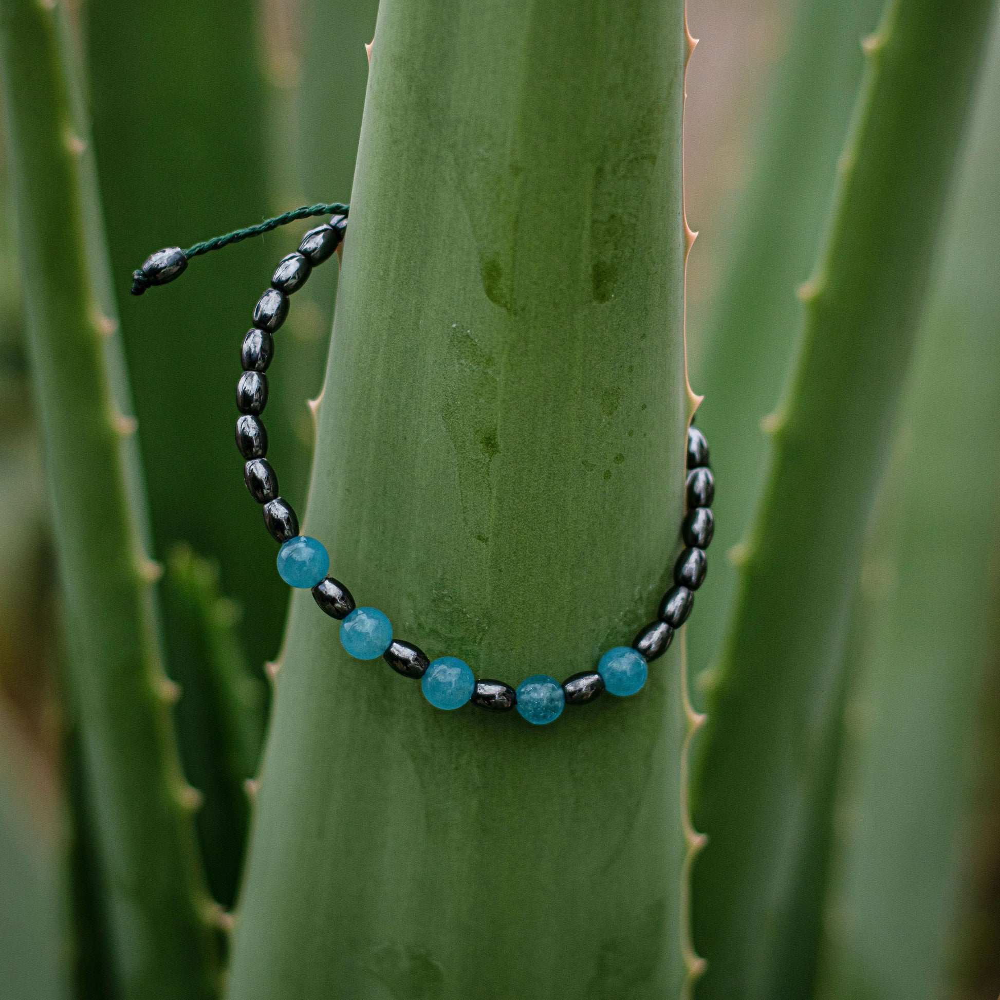 Το βραχιόλι είναι φτιαγμένο με ανθεκτικό κερωμένο νήμα (σε σκούρο πράσινο/μαύρο) και διαθέτει ρυθμιζόμενο κούμπωμα τύπου macrame. Αυτή η κατασκευή εξασφαλίζει εύκολη προσαρμογή στο μέγεθος του καρπού σας, προσφέροντας τέλεια και άνετη εφαρμογή, ενώ ταυτόχρονα το καθιστά ανθεκτικό στην καθημερινή χρήση.